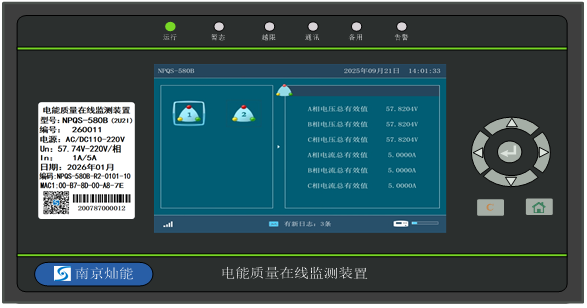 产品概述:电网是国家重要的基础设施,关系国家能源安全与经济社会稳定运行,随着新型电力系统建设推进,对电能质量监测设备的提出了更高要求。公司响应行业发展需求,推出NPQS-580B电能质量监测装置,该装置各项功能及性能指标严格符合国家标准《GB/T 19862电能质量监测设备通用要求》A类设备标准,核心元器件实现国产化,软、硬件架构兼顾稳定性与灵活性,具备多场景安装、全维度监测、...